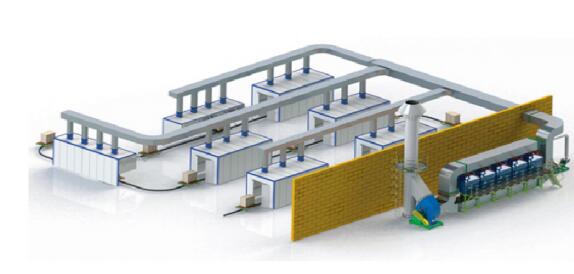 Os gases de exaustão são enviados para o adsorvedor de carvão ativado pelo ventilador de entrada de ar. Sob a ação da força de Van der Waals, o solvente orgânico dos gases de escape é capturado e adsorvido pelos microporos do carvão ativado. Depois que o carvão ativado é saturado com adsorção, ele é regenerado. Os gases de escape são purificados pela adsorção de carvão ativado e depois descarregados de forma limpa.
