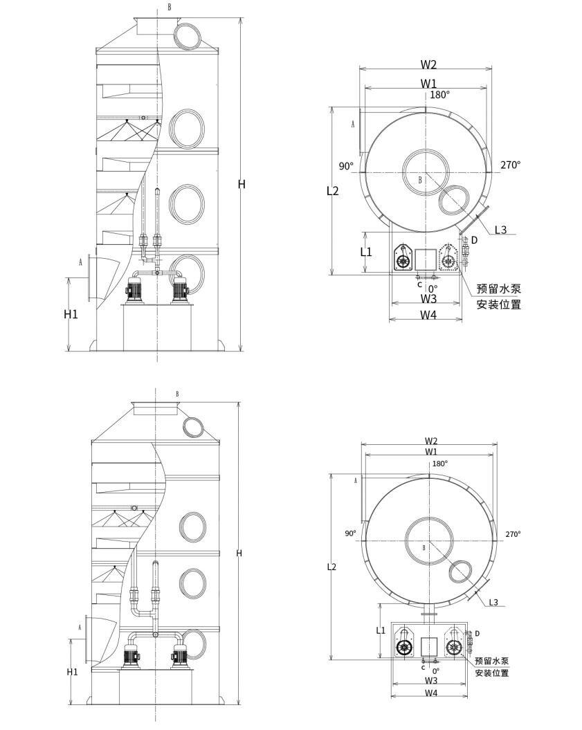 Para garantir a conveniência e segurança do transporte, as torres de lavagem de ciclones PP são divididas em duas categorias de especificações: